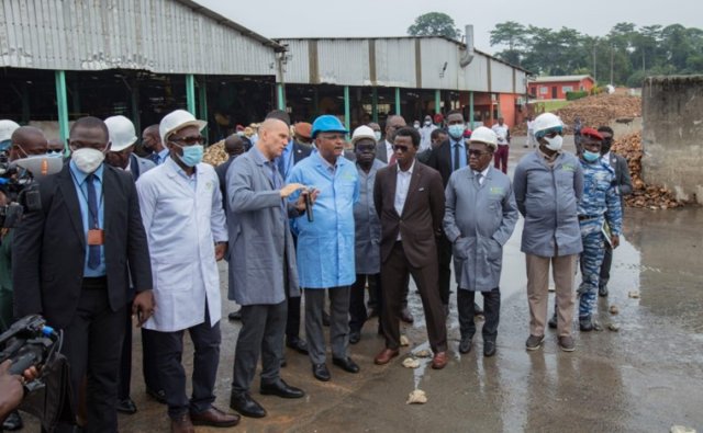 Le Premier ministre Patrick Achi a visité Sud-Comoé Caoutchouc (SCC), une société de transformation du caoutchouc naturel, à Adaou, ce samedi 2 avril 2022.